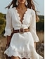 Damen Minikleid Boho-Kleid Spitzenkleid Westernkleid Elegant Mode Modern Outdoor Urlaub Ausgehen Normale Passform Einfach Langarm V Ausschnitt Weiß Sommer Frühling