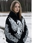 Damen Kapuzenpullover Grafik Tiermotiv Stammes Elegant Punk Vintage Langarm Mit Kapuze Normale Oberteile Lässig Heim Straße Schwarz Weiß Beige Herbst