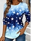 Neujahr Damen T Shirt Druck Grafik Stern Mode Lässig Langarm Rundhalsausschnitt Normale Oberteile Täglich Wochenende Blau Sommer Frühling Herbst