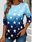 Damen T Shirt Druck Ombre Grafik Stern Mode Stilvoll Lässig Langarm Rundhalsausschnitt Normale Oberteile Täglich Wochenende Urlaubskleidung Blau Sommer Frühling Herbst
