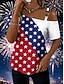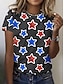 Amerikanischer Unabhängigkeitstag Damen T Shirt T-Shirt Druck Grafik Stern Mode Stilvoll Klassisch Kurzarm Ein-Schulter Normale Oberteile Täglich Ausgehen Wochenende Blau Rote Sommer Frühling