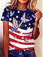 Unabhängigkeitstag Patriotisches Damen T-Shirt Grafik Flagge Stern Vintage Stilvoll Klassisch Kurzarm Crew Neck Reguläre Tops Täglich Wochenende Strandmode Druck Blau Sommer Frühling