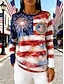 Amerikanischer Unabhängigkeitstag Damen T Shirt T-Shirt Druck Grafik Flagge Stern Mode Basic Klassisch Langarm Rundhalsausschnitt Normale Oberteile Täglich Ausgehen Wochenende Blau Rote Sommer