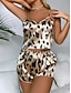 Damen Schlafanzug Freizeitkleidung Mode Lässig Komfort Grafik Tiermotiv Leopard Gerafft Elastischer Bund Rückenfrei Trägertop Shorts Täglich Heim Urlaub Ärmellos V Ausschnitt Schwarz Braun Grün