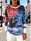 Amerikanischer Unabhängigkeitstag Damen T Shirt T-Shirt Druck Grafik Stern Mode Basic Lässig Langarm Rundhalsausschnitt Normale Oberteile Täglich Ausgehen Wochenende Blau Sommer Frühling Herbst
