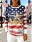 Amerikanischer Unabhängigkeitstag Damen T Shirt T-Shirt Druck Grafik Stern Mode Basic Lässig Langarm Rundhalsausschnitt Normale Oberteile Täglich Ausgehen Wochenende Weiß Sommer Frühling Herbst