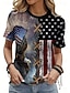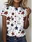 Amerikanischer Unabhängigkeitstag Damen T Shirt Druck Grafik Flagge Stern Stilvoll Klassisch Lässig Kurzarm Rundhalsausschnitt Rundhals Normale Oberteile Täglich Schwarz Weiß Rote Sommer Frühling