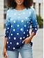 Neujahr Damen T Shirt Druck Ombre Grafik Stern Stilvoll Lässig Langarm Rundhalsausschnitt Normale Oberteile Täglich Wochenende Blau Sommer Frühling Herbst
