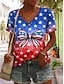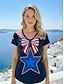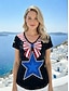 Amerikanischer Unabhängigkeitstag Damen T Shirt T-Shirt Druck Grafik Stern Stilvoll Klassisch Lässig Kurzarm V Ausschnitt Normale Oberteile Täglich Ausgehen Schwarz Wein Marineblau Sommer Frühling