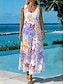 Damen Maxikleid A Linie Kleid Lässig Täglich Normale Passform Blumen Grafik Stern Ärmellos V Ausschnitt U-Ausschnitt Weiß Sommer Frühling
