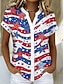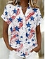 Amerikanischer Unabhängigkeitstag Damen Bluse Knöpfe Druck Grafik Geometrisch Stern Vintage Stilvoll Lässig Kurzarm V Ausschnitt Normale Oberteile Täglich Weiß Sommer Frühling