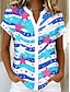 Damen Hemd Grafik Stern Gestreift Vintage Tropisch Stilvoll Kurzarm Hemdkragen Normale Oberteile Täglich Weiß Sommer Frühling