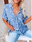 Damen Bluse Knöpfe Druck Stern Elegant Urlaub Stilvoll Kurzarm Hemdkragen Lange Oberteile Täglich Blau Schwarz Rosa Wein Sommer Frühling
