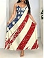 Amerikanischer Unabhängigkeitstag Damen Maxikleid A Linie Kleid Unterkleid Urlaub Lässig Strand Ausgehen Normale Passform Grafik Stern Ärmellos V Ausschnitt Blau Rote Sommer Frühling