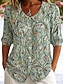 Damen Hemd Baumwoll-Leinen-Hemden Pullover Einfarbig Einfach Elegant Urlaub Vintage Dreiviertelarm Lange Oberteile Täglich Outdoor Streetwear Weiß Rosa Himmelblau Grün Kaki Sommer Frühling Herbst