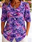 Damen Hemd Baumwoll-Leinen-Hemden Bluse Tasche Knöpfe Einfach Aktiv Stilvoll Dreiviertelarm V Ausschnitt Normale Oberteile Täglich Streetwear Ferien Schwarz Purpur Orange Rosa Grau Sommer Frühling