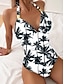 Woman's Einteiliges Badeanzug Farbblock Monokini Rückenfrei Bauchkontrolle Hochtailliert Slim Urlaub Strandbekleidung Floral Streifen Halterkragen Ärmellos Badeanzüge