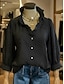 Damen Hemd Patchwork Knöpfe Einfarbig Basic Lässig Langarm V Ausschnitt Normale Oberteile Täglich Schwarz Rote Grau Herbst Winter