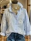Damen Waffelhemd Freizeithemd Sommeroberteile Grafik Farbblock Abstrakt Elegant Urlaub Vintage Langarm Umlegekragen Lange Oberteile Täglich Outdoor Streetwear Weiß und Blau Weiß und Rosa Weiß Sommer