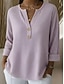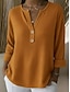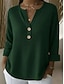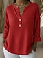 Damen T Shirt Patchwork Tunika Knöpfe Einfarbig Einfach Elegant Vintage Mode Langarm V Ausschnitt Normale Oberteile Täglich Ausgehen Wochenende Schwarz Weiß Wein Grün Khaki Herbst Winter