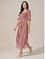 Damen Midikleid A Linie Kleid Elegant Täglich Urlaub Hochzeitsgast Spitze Normale Passform Blumen Kurzarm V Ausschnitt Pudriges Rosa