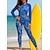 Damen Rash Guard Badeanzug Patchwork Tropisch Bedruckt 2 teilig Frontreißverschluss UV-Sonnenschutz Schnelltrocknend Atmungsaktiv Langarm Bademode Badeanzug Surfen Wassersport Schwimmen Sommer