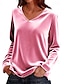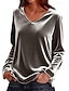 Damen T Shirt Patchwork Einfarbig Einfach Elegant Vintage Mode Langarm V Ausschnitt Normale Oberteile Täglich Ausgehen Wochenende Silber Rosa Wein Rote Königsblau Herbst Winter