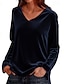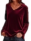 Neujahr Damen Samt Einfarbig Stilvoll Langarm Wasserfallausschnitt Normale Oberteile Blau Schwarz Wein Herbst Winter