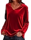 Neujahr Damen Samt Kleidhemd Knopfhemd Samtbluse Pailletten Vintage Mode Langarm Umlegekragen Normale Oberteile Täglich Hochzeitsgast Party-Abendmode Blau Schwarz Weiß Rosa Rote Herbst Winter