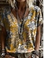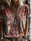 Damen T Shirt Henley Hemd Knöpfe Druck Blumen Vintage Ethnisch Täglich Basic Dreiviertelarm V Ausschnitt Normale Oberteile Ferien Wochenende Rote Purpur Grün Khaki Grau Herbst Winter