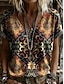 Damen T Shirt Reißverschluss Druck Grafik Vintage Bohemien Tropisch Hawaiianisch Langarm V Ausschnitt Normale Oberteile Täglich Ausgehen Wochenende Schwarz und weiss Sommer Frühling Herbst Winter