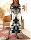 Damen Maxikleid Boho-Kleid Shiftkleid Sommerkleid Strandkleid Bohemien Urlaub Ethnisch Strand Ferien Date Normale Passform Grafik Vintage Dreiviertelarm V Ausschnitt Schwarz und Weiß Hellgrün Purpur