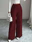 Damen Hose Anzughose Sommerhose Urlaub Mode Alltagstauglich Volle Länge Hohe Taille Einfach Patchwork Tasche Weites Bein Komfort Weich Atmungsaktiv Unelastisch Streetwear Büro Arbeit Weinrot Aprikose