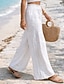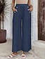 Damen Leinenähnliche Kunstbaumwoll Leinen Hosen Sommerhosen Strandhosen Urlaub Mode Lässig Täglich Voller Länge Hohe Taille Einfarbig Einfache Tasche Elastischer Bund Weite Beine Komfort Schnell