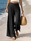 Damen Hose Sommerhose Strandhose Urlaub Mode Alltagstauglich Volle Länge Mittlere Taillenlinie Einfarbig Einfach Kordelzug Patchwork Weites Bein Komfort Schnelltrocknend Weich Unelastisch Streetwear