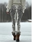 Womens Viking Boho Fleece-Lined Leggings Urlaub Vintage Ethnostil Vollständig Länge Mittlere Taille Dehnbar Outdoor Winter Dunkelgrau Herbst Winter
